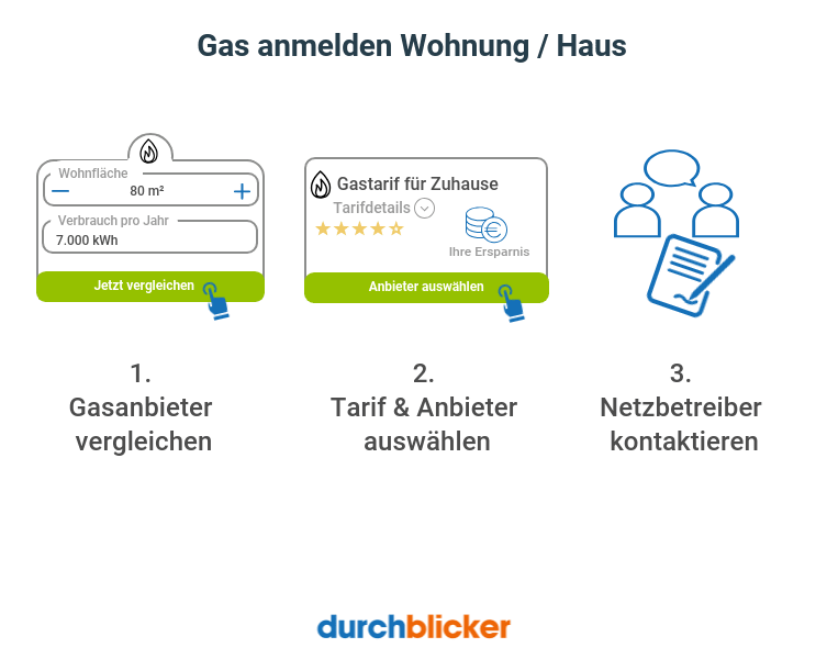 Den Gaslieferanten können Sie frei auswählen, zum Beispiel im online Vergleichsrechner. Der Netzbetreiber ist örtlich fix vorgegeben. Und so funktioniert die Gasanmeldung beim Umzug Schritt-für-Schritt: