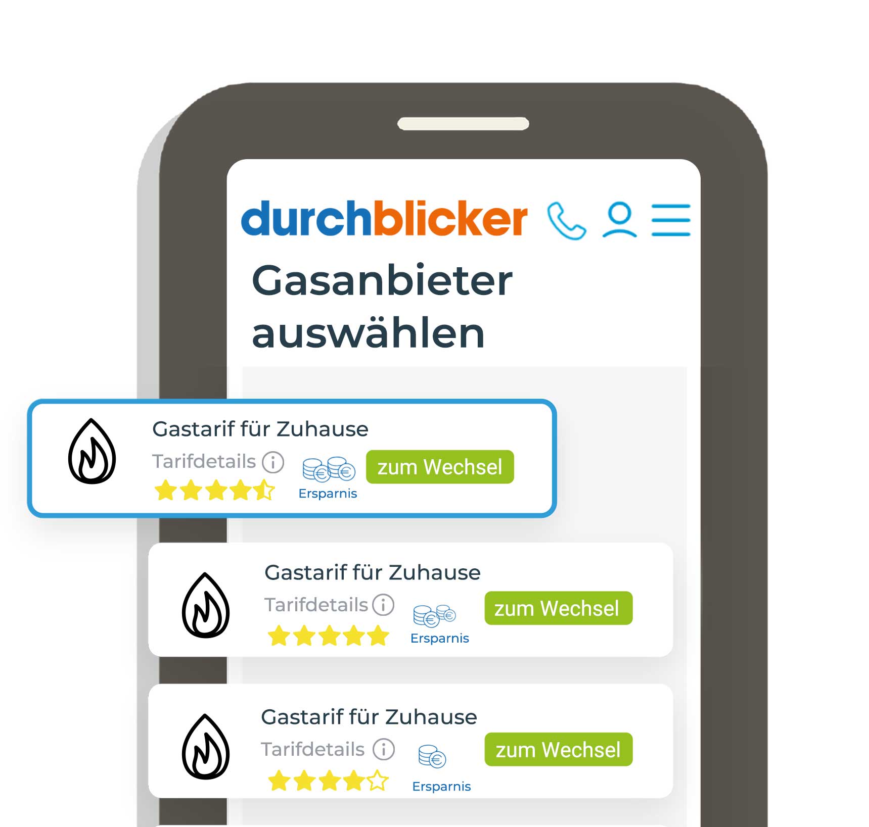 Vergleichen Sie online Gasanbieter mit dem durchblicker Gaspreis Vergleich und wechseln Sie zum passenden Anbieter. Wählen Sie das gewünschte Angebot aus und beantragen Sie den Wechsel mit einem Klick. Für den bequemen Online-Wechsel sind nur noch wenige Angaben für Ihren neuen Gasvertrag notwendig. Bei Fragen steht Ihnen das durchblicker Experten-Team zur Seite.