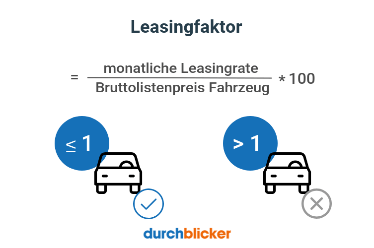 Leasingfaktor = Monatliche Leasingrate : Bruttolistenpreis des Fahrzeugs * 100