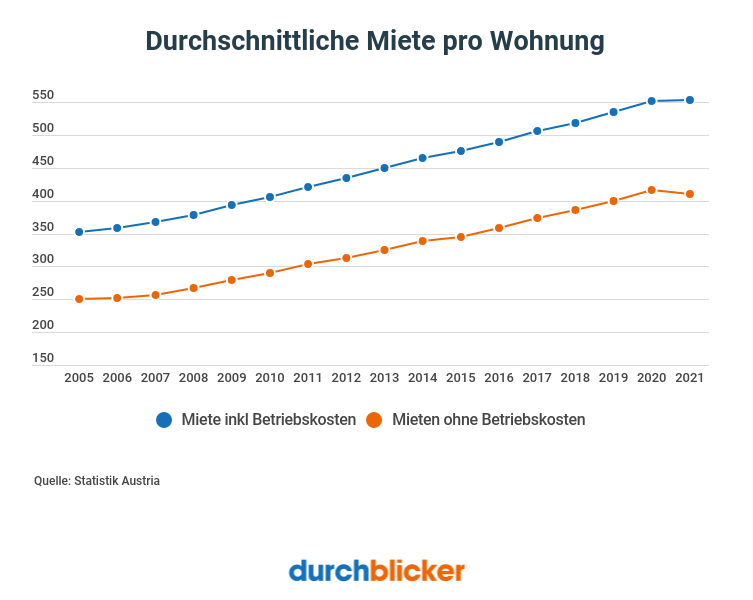 Ein ausschlaggebender Faktor, der für Eigentum spricht, sind steigende Mieten. Laut Statistik Austria sind die monatlichen Mietpreise inkl. Betriebskosten seit 2005 um durchschnittlich 180 Euro gestiegen.