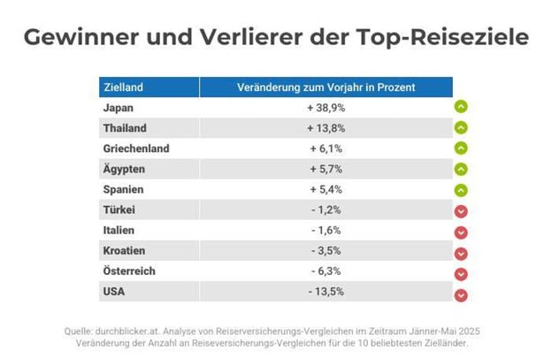durchblicker analysiert Sommer-Reiseziele der Österreicher 2025: Japan und Thailand boomen, USA verlieren an Beliebtheit