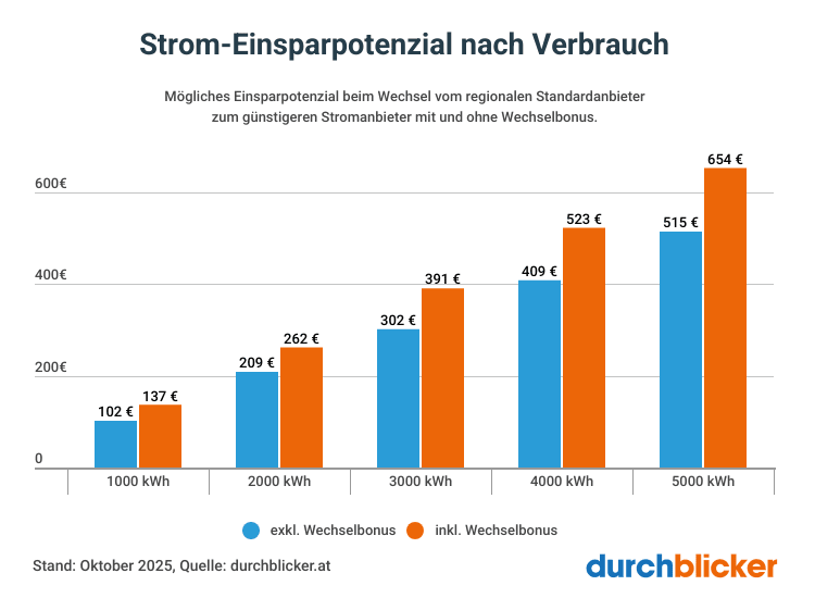 In Österreich können Sie Ihren Stromlieferanten selbst auswählen – je nach Wohnort stehen unterschiedliche Anbieter und Tarifangebote zur Verfügung. Haben Sie Ihren Stromanbieter noch nie gewechselt, dann beziehen Sie Ihren Strom vermutlich über den regionalen Anbieter – das Einsparpotenzial durch den Anbieterwechsel ist hier besonders hoch: