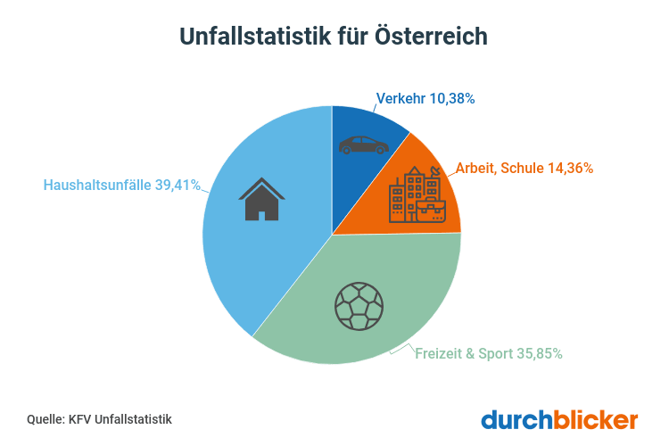 Wie die Grafik zeigt, findet ein Großteil der Unfälle dort statt, wo die gesetzliche Unfallversicherung Sie nicht absichert: in der Freizeit. Mit einer privaten Unfallversicherung können Sie sich vor den finanziellen Folgen eines Unfalls schützen.