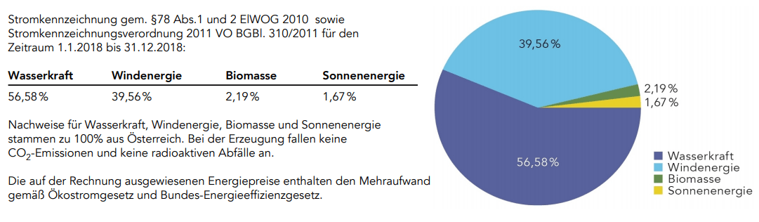 Um herauszufinden, aus welchen Energiequellen Sie Ihren Strom beziehen, reicht ein Blick auf Ihre Stromrechnung. In Österreich müssen auf der Stromrechnung verpflichtend die Stromquellen angeführt werden, die Ihr Energielieferant nutzt. Diese Aufstellung wird auch als Strommix-Kennzeichnung bezeichnet und kann zum Beispiel so aussehen:
